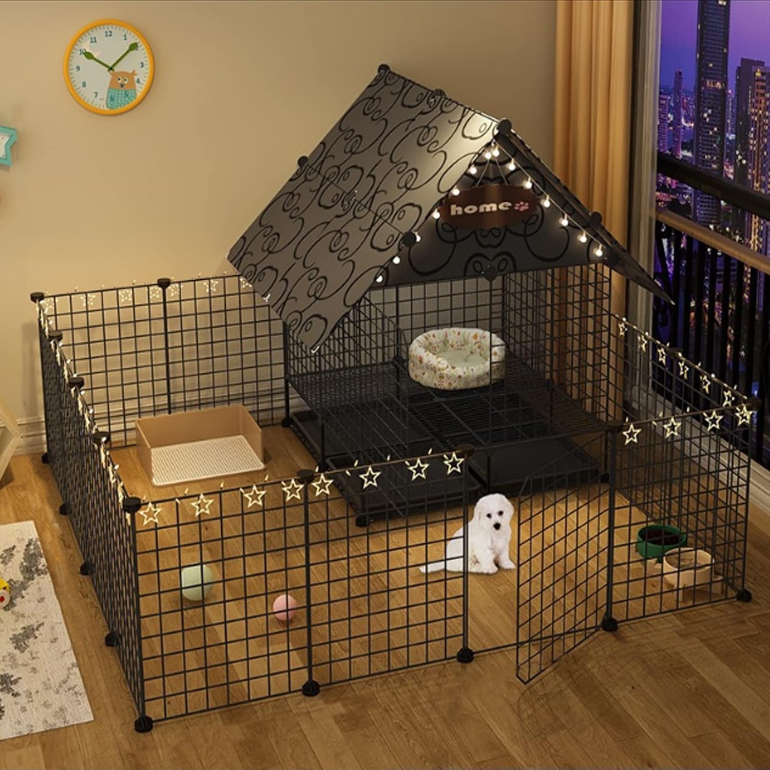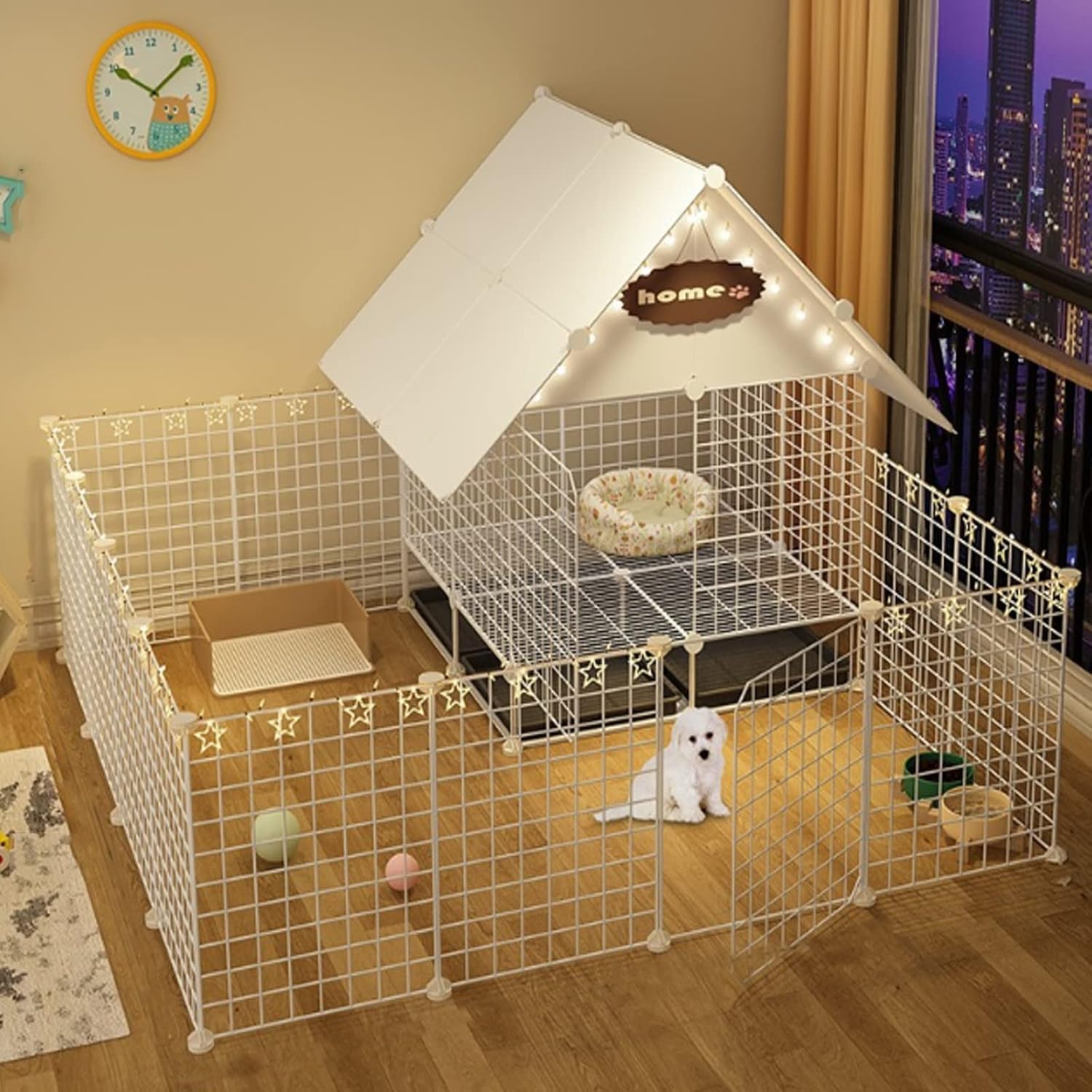 Metal Wire Folding Rabbit Cage:Welcome to our store! Enhance your pet’s comfort with our versatile dog cage, designed to create a safe and cozy space for your furry friend. If you’ve ever come home to a messy room caused by your dog, this pet enclosure is the perfect solution to help you maintain a tidy home while providing a secure area for your pet. Why choose our dog cage? This stylish and functional dog playpen serves as a warm retreat for your beloved companion, making it an ideal choice for both indoor and outdoor use. Whether you're looking for a doghouse, an outdoor kennel, or a pet fence, our enclosure caters to all your needs. **Specifications** - **Product Types**: Dog cage, dog playpen, doghouse, pet fence, dog crate, dog enclosure, dog villa, dog apartment, dog kennel - **Material**: Durable metal with ABS plastic connectors - **Sizes Available**: 75*39*95CM, 75*75*95CM, 75*111*95CM, 111*111*95CM, 147*111*95CM, 147*147*95CM - **Gap Size**: 1.5CM - **Color Options**: Black, White - **Assembly**: Some assembly required **Key Features**: - Weatherproof roof for outdoor protection - Removable tray for easy cleaning of food, water, or waste - Folds down easily for convenient transport - Simple assembly process Please note: This listing includes one dog cage only; other accessories shown are not included. Our dog cage is perfect for puppies and small dogs, providing a safe haven where they can relax and play. Your pet will appreciate the comfort, and you’ll appreciate the peace of mind. **Order now** by clicking the Add to Cart button and give your dog the cozy home they deserve! If you have any questions about our products, feel free to reach out; we are here to assist you. Enjoy your shopping experience!