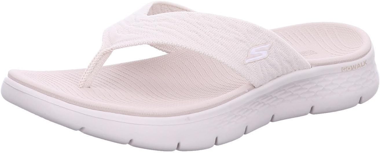 Experience ultimate comfort with these womens sandals from Skechers GO WALK Flex collection. These flip flops for women feature an engineered knit upper and 3-point thong design perfect for beach or casual wear. The contoured Goga Mat footbed and lightweight ULTRA GO cushioning provide exceptional comfort, while the flexible traction outsole ensures stable footing. These sandals for women are machine washable and crafted with 100% vegan materials, making them both practical and eco-conscious.