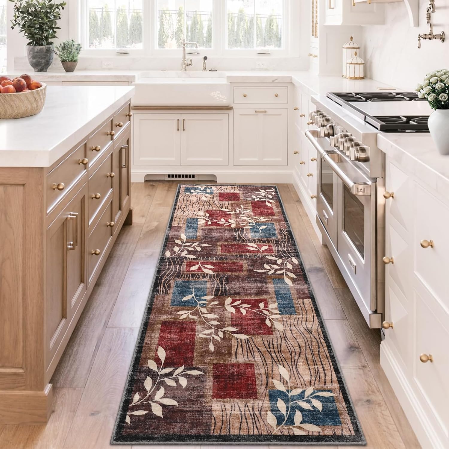 Modern Floral Patchwork Washable RugHighlights at a Glance:- Modern Floral Patchwork Design: Enhances your home's aesthetic.- Soft & Gentle on Skin: Cozy for bare feet.- Non-Slip: Reduces accident risks in busy areas.- Foldable: Easy to transport and store.- Machine Washable & Easy Care: Keeps your rug fresh with minimal effort.- Resistant to Shedding & Stains: Ideal for homes with kids and pets.- Low-Pile for High-Traffic Durability: Comfortable without obstructing doorways.Specification:Material: 100% polyester, the rug backing was coated with TPR backingSize(Ft): 2x6 / 5x7 / 8x10 / 9x12 / 10x13Friendly Note:1. Simply wipe local stains with a wet rag and use a vacuum cleaner for daily maintenance.2. Deep cleaning is also possible, with the option to machine wash the rug, ensuring it remains fresh and clean.3. When you first get the carpet, you may notice some wrinkles or folds, but don't worry! Simply lay it flat on the floor and the creases will naturally disappear. You can use it with peace of mind learning that this is a normal process.