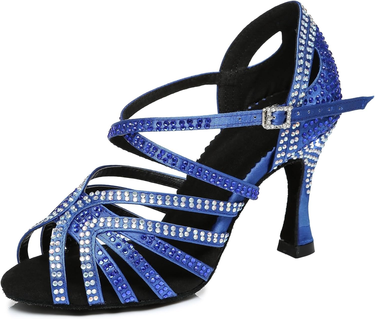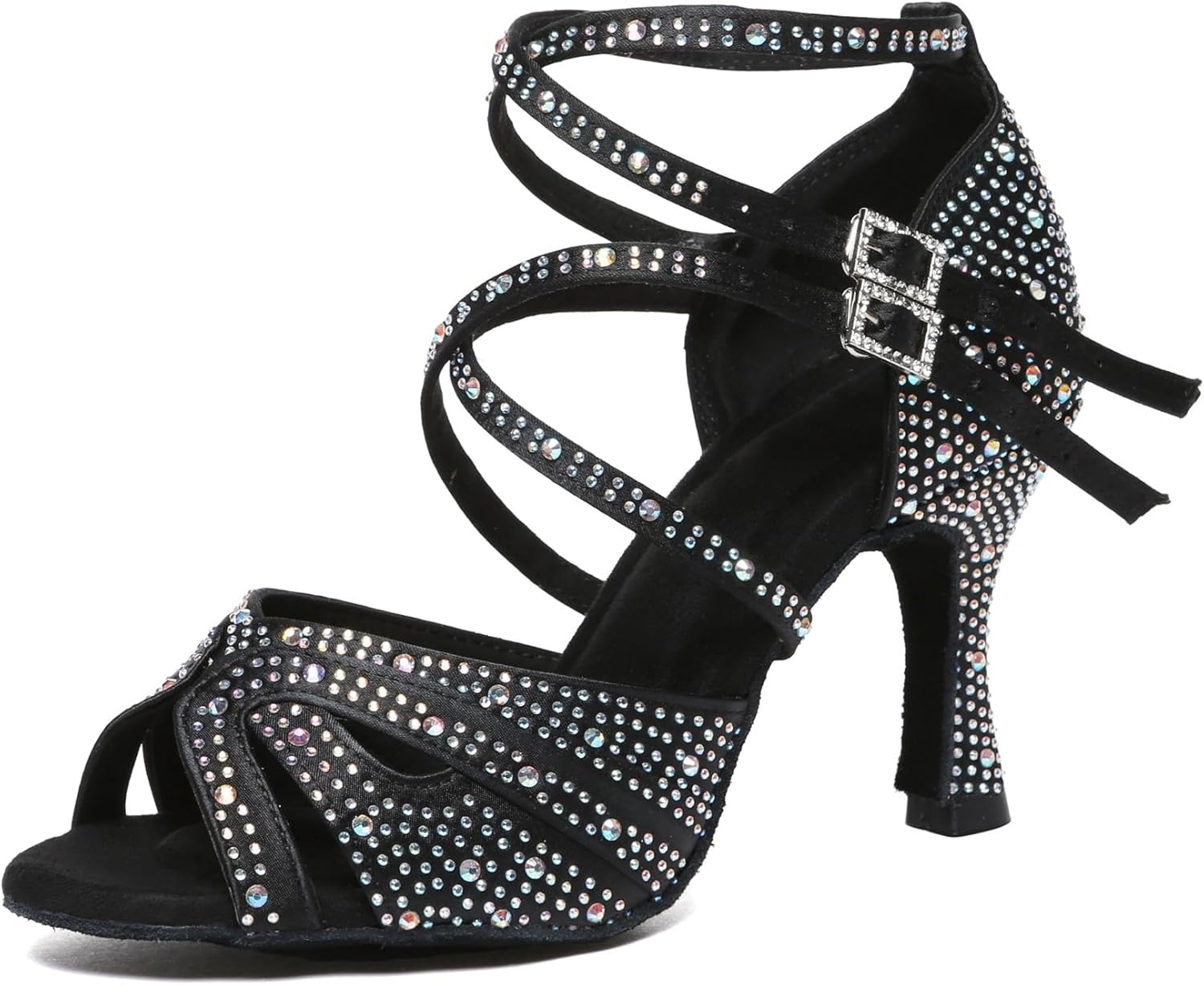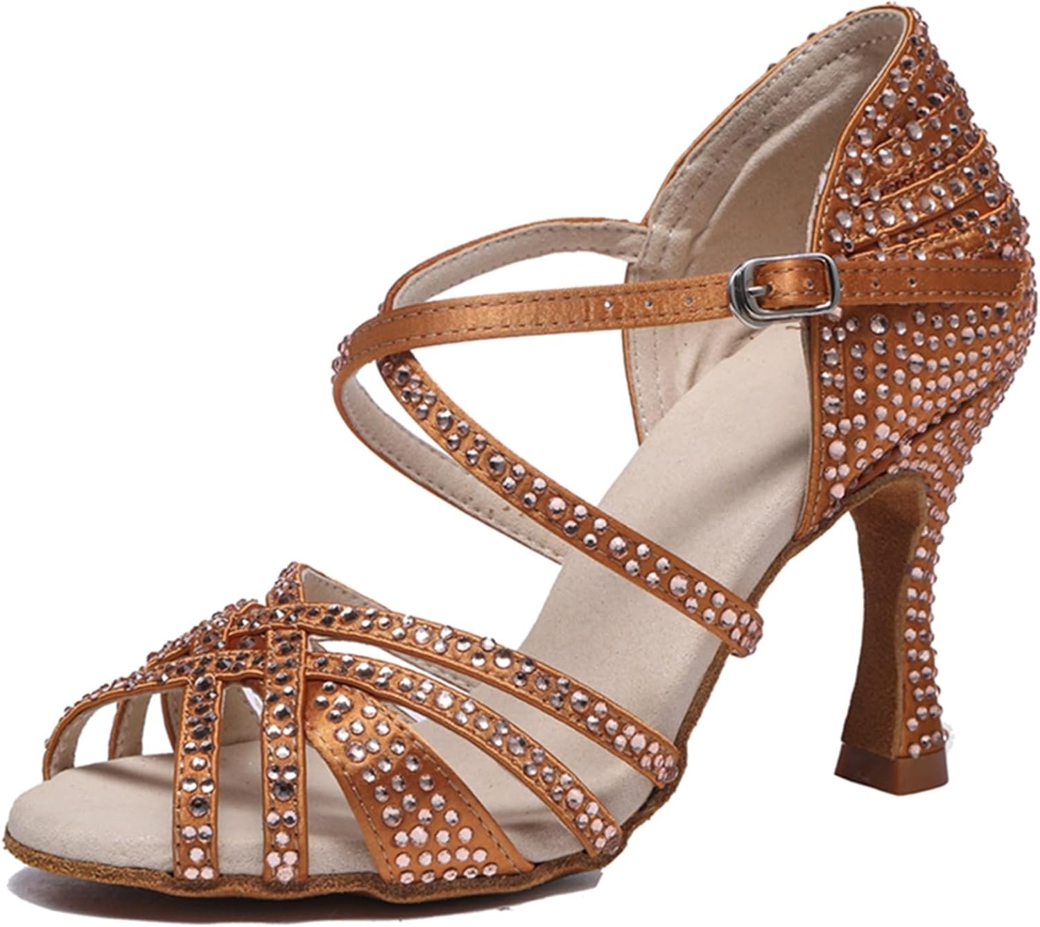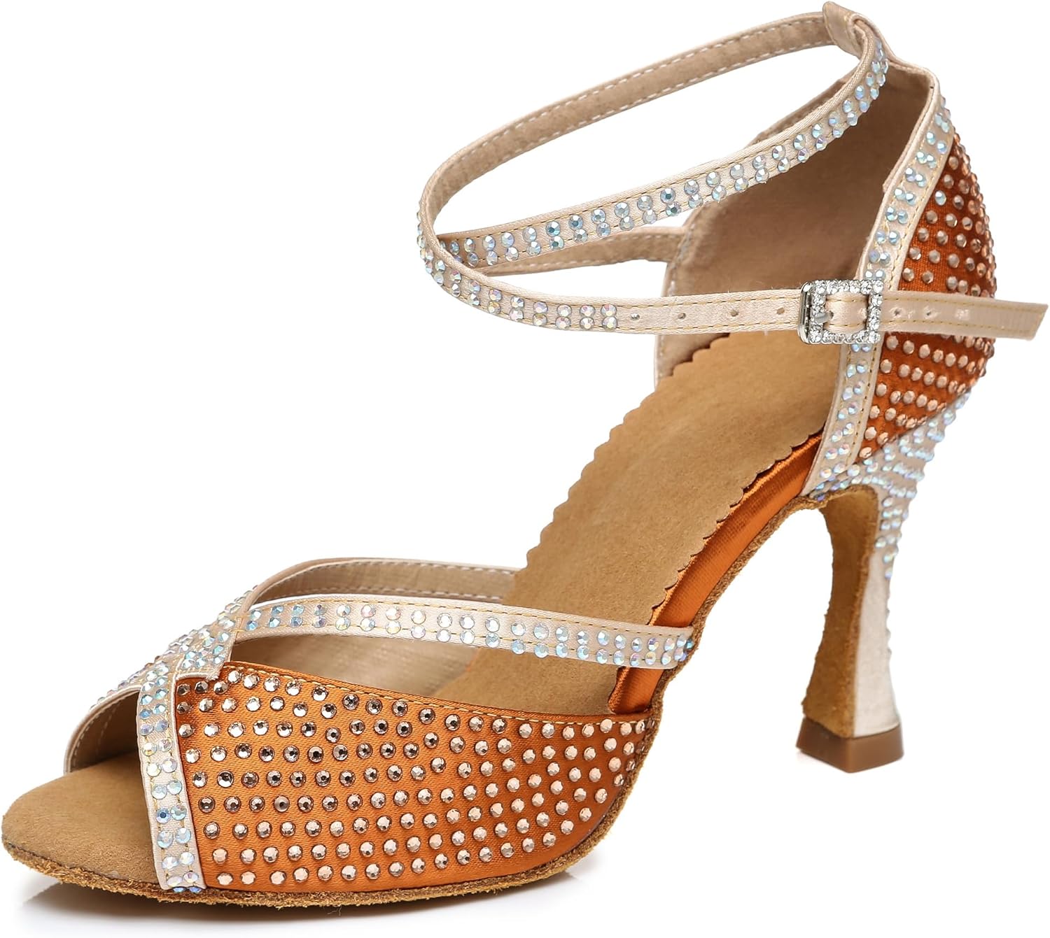 ZengyeZoo Womens Low High Heel Dance Shoes with Rhinestones Comfortable Wedding Evening Sandals
